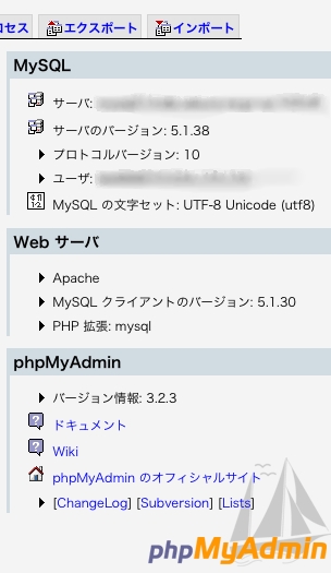 バージョン2.9からはMySQLのバージョン4.1.2以上が必要とのことで5.1に変更。